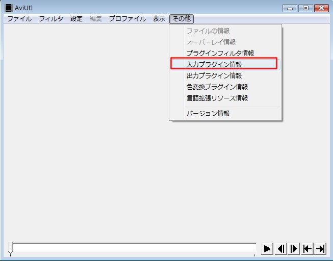 AviUtlの本体を起動して、その他の入力プラグイン情報をクリックします。