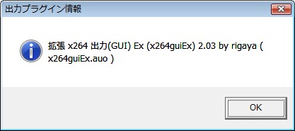 上のように、AviUtlのその他の、出力プラグイン情報をクリックします。