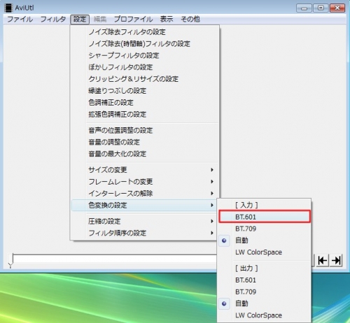 色変換の設定は、AviUtlの設定メニューから、色変換の設定を開きます。
