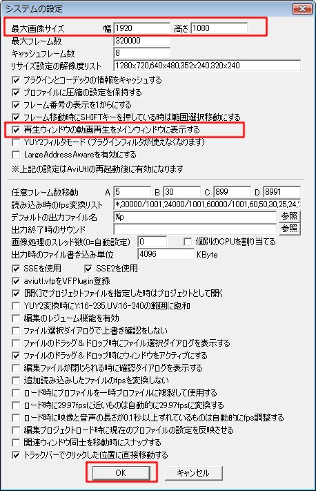 解像度の大きな動画も読み込めるように、最大画像サイズを大きくしておきます。