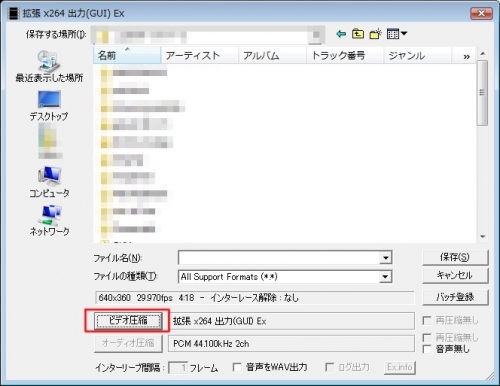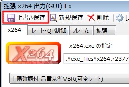 プラグイン出力の拡張 x264 出力(GUI) Exをクリックします。