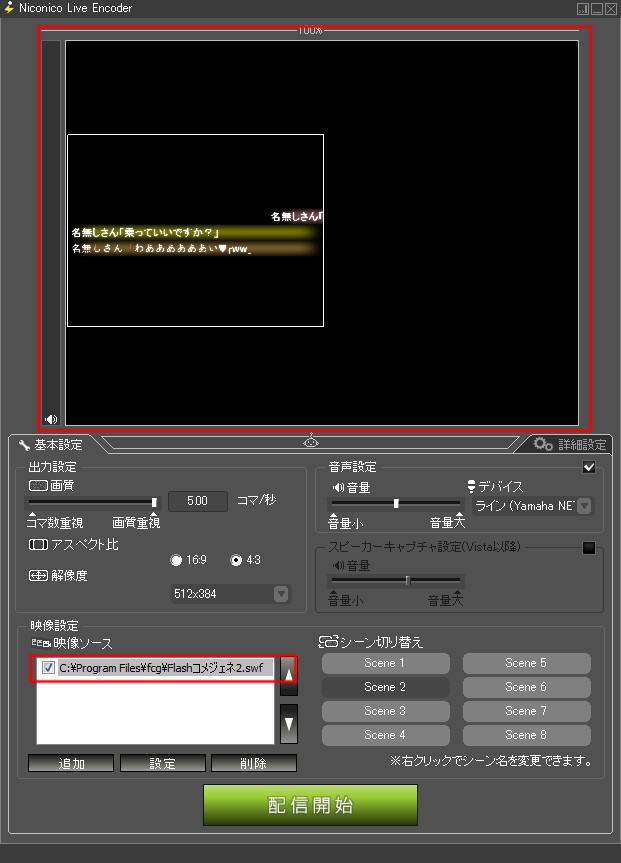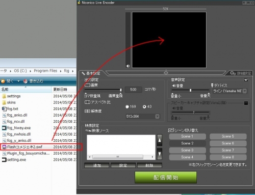 今回は、Flashコメントジェネレーターと、Niconama Comment Viewer(NCV)と、Niconama Live Encoder(NLE)を使います。