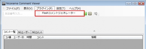 選択して、赤枠のように「Flashコメントジェネレーター」が表示されていればOKです。