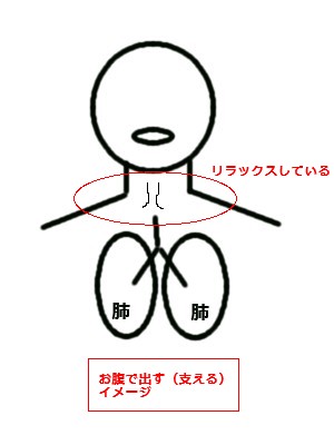 お腹に息を吸いこむ、お腹から息を吐き出すイメージを持つことで、上半身をリラックスさせることです。