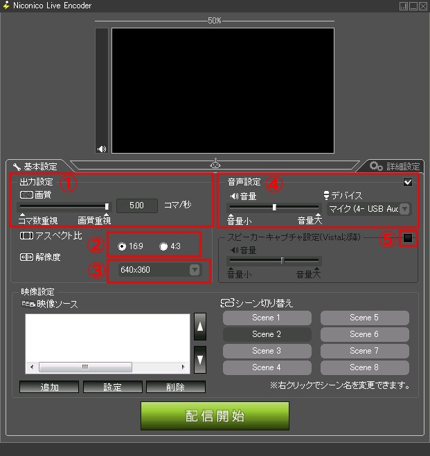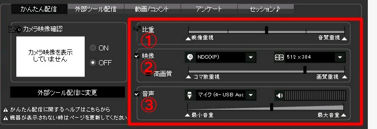 「ニコレポに反映されてもよい行動を以下よりお選びください」という部分の、赤い●で示した5つの項目が、Twitter連携で流れます。
